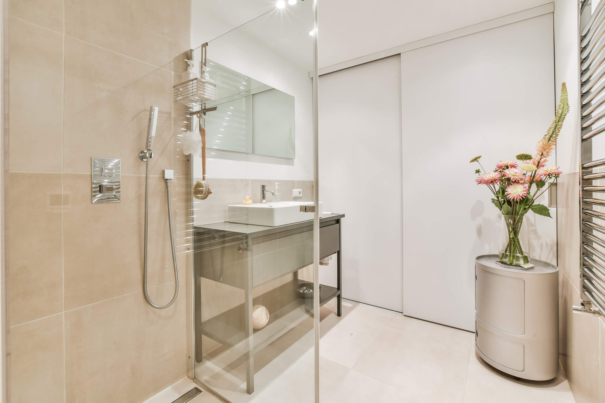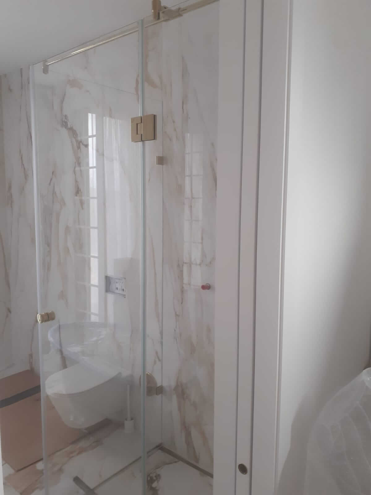 • sklenené sprchové kúty s posuvnými dverami,