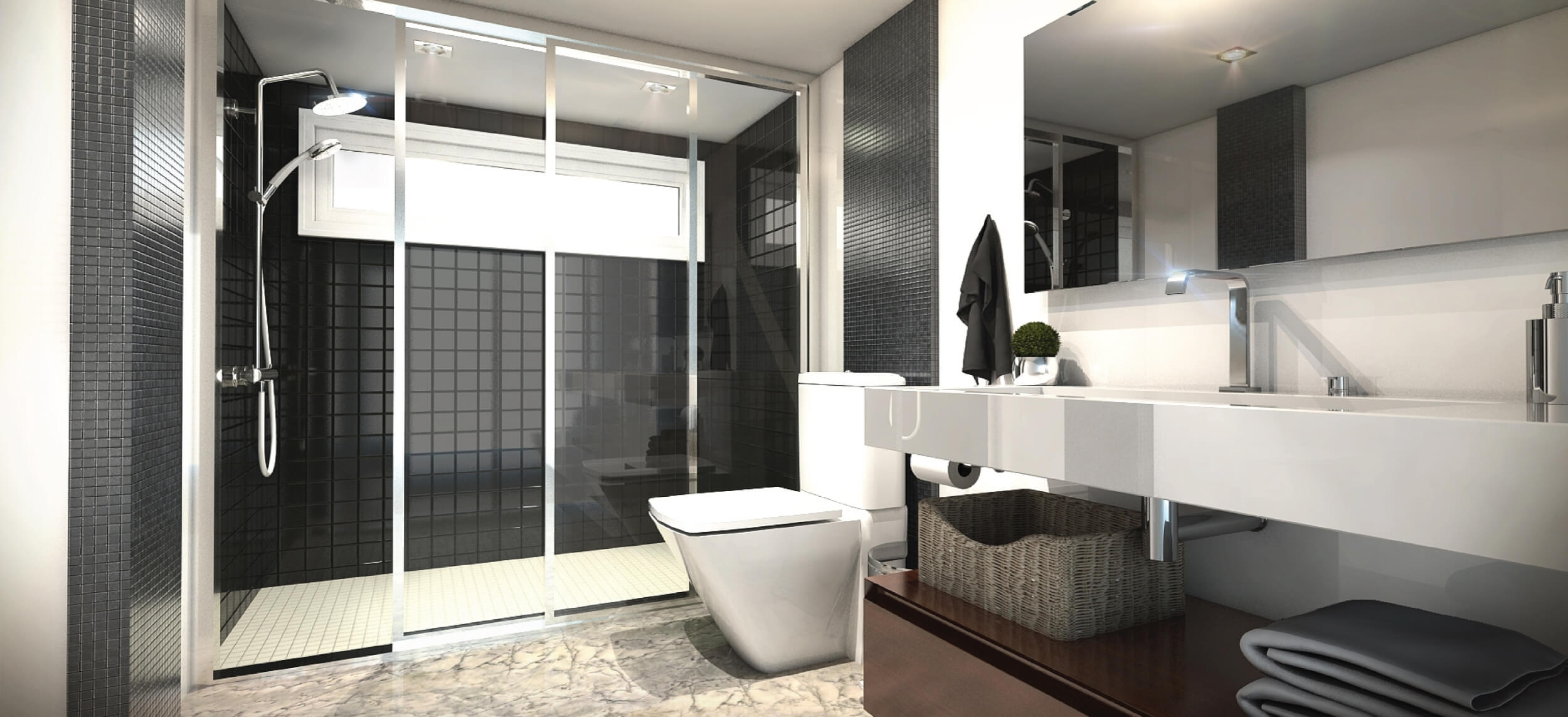 Máme riešenia pre kúpeľne akýchkoľvek rozmerov, len nám povedzte, ako si ich predstavujete, a my vám pomôžeme vytvoriť priestorový dojem.