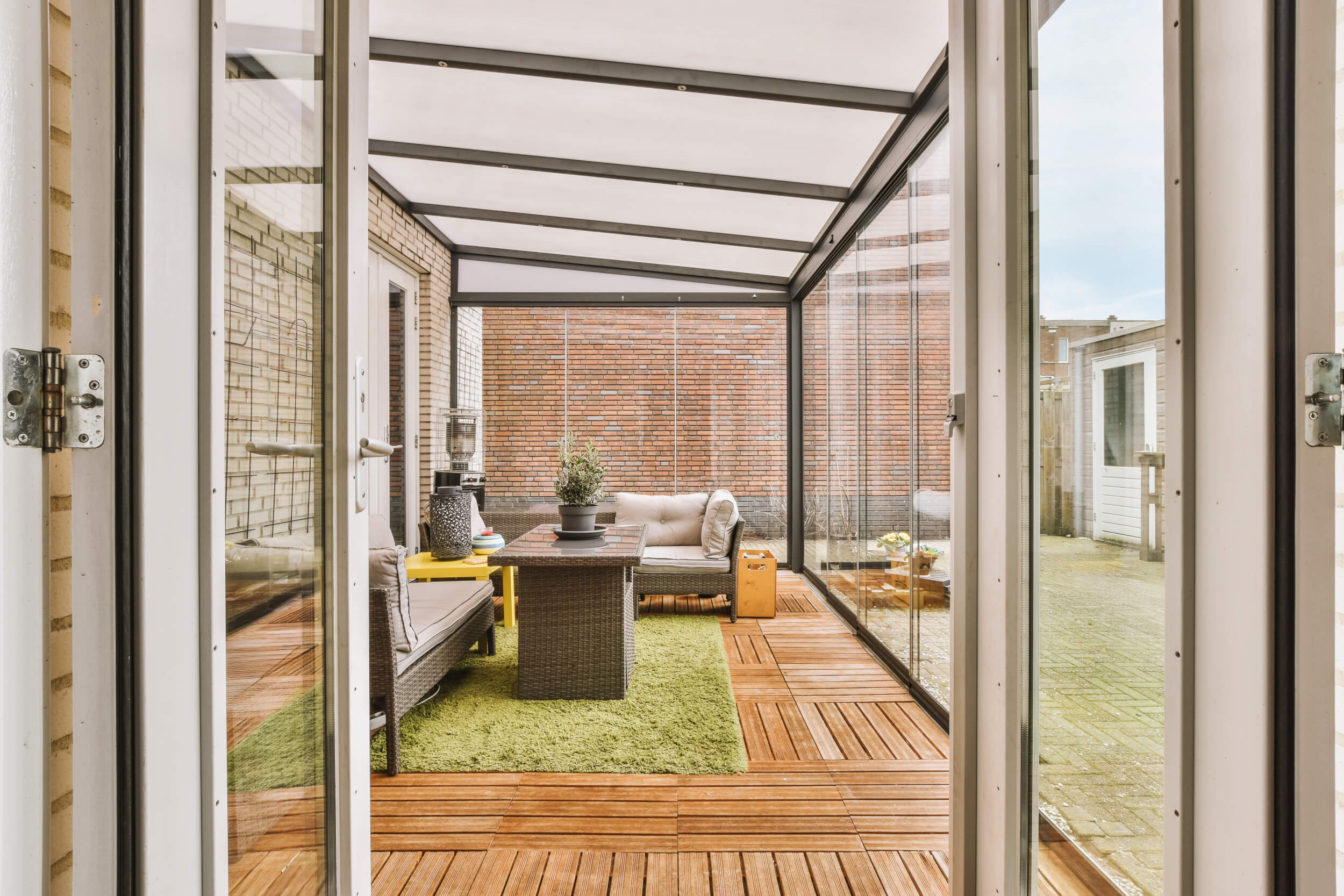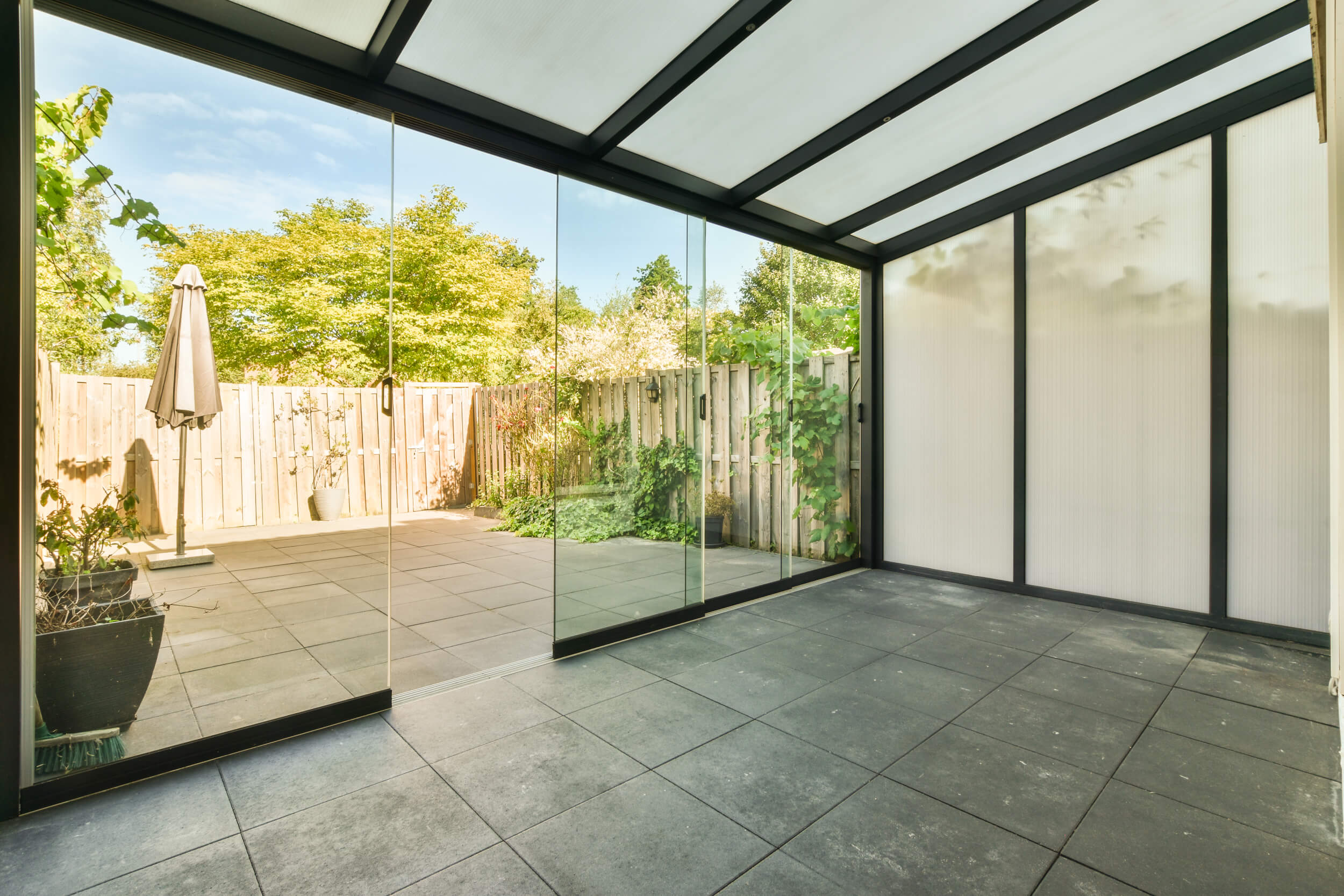 Zimné záhrady, pergoly a sklenené prístrešky majú za úlohu zastrešiť priestor a nechať prenikať svetlo. Tým sa zvýši bezpečnosť v priestore, pretože bezpečnostné sklo je pevné a nezraní vás, ak sa niečo zrúti do preskleného priestoru.